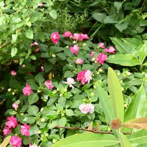 おはようございます 八重咲インパチェンス アップルブロッサム 冬越しの八重咲両株ともにモリモリになってきました✨ 左側はチェリーセージは7年ほど 今年は既に2度の切り戻し✂️ 手前のビョウヤナギ💛も次々咲き続けています。こちらはかなりの古株さん✨ 周囲にはヤブミヨウガの緑の葉がイキイキと茂り始めています💚 雨上がりの朝を迎えお庭のお花は元気そう🌸 雲の切れ間から陽が差しこみ綺麗です☀️ 素敵な空💙 素敵な日曜をお過ごし下さい✨