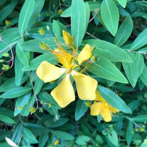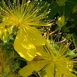 オトギリソウ属(ピペリカム)の美しい仲間たち🌼🌿🌼 左上:タイリンキンシバイ(学名: Hypericum Hidcote) タイリンキンシバイは、枝に艶のある黄色い五弁の丸花を多数つけ、花は全開します。キンシバイ(金糸梅)の園芸品種で、キンシバイに比べて花弁が大きく花色の黄色味が強く、葉も大きいです。雄しべは多数つき、花弁の長さの1/2より短いです。🌼🌿 右上:ビョウヤナギ(学名: Hypericum monogynum) ビョウヤナギは、黄金色の花が上向きに咲き、多数の雄しべが花弁より長く突き出すのが特徴です。🌸🌿 左下:セイヨウキンシバイ(学名: Hypericum calycinum) セイヨウキンシバイは、雄しべが花弁より長く、葯は赤色を帯びています。ビョウヤナギとそっくりです。見分け方は、オシベの先の葯の色で、セイヨウキンシバイは赤橙色、ビヨウヤナギは黄色〜白です。🌺🌿 右下:ヒペリカム・アンドロサエマム(学名: Hypericum androsaemum) ヒペリカム・アンドロサエマムは、園芸店で通常「ピペリカム」の名で販売されている落葉~半落葉樹で、主に美しい実を楽しむヒペリカムです。 🌼🌿🌸🌿🌺 美しいオトギリソウ属(ピペリカム)の花たちの違いをお楽しみください。🌼🌿🌸