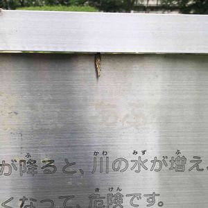 洪水注意! 蓑虫 ミノムシさんへ 大雨が降るとこの川はよく氾濫するからね 気をつけて!