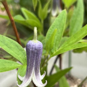 ◯クレマチス◯ ツボ型クレマチスの雫(上)と梅紫(下)です。 梅紫は実際はもう少し赤みがあるかも。両方ともとても可愛いです💕
