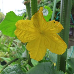 🏷️今日のお花 キュウリ🥒 いつもあまりうまく育てられず、2〜3本採れたらいいところだけど、 今年は、1本の苗🌱から10本くらい採れました😊 朝夕2回の水やりは大変ですが、まだまだ花も咲き続けているので、嬉しいです😊 時々、収穫時期に見逃しオバケキュウリ👻🥒も見つかりますが、ご愛嬌 笑😆