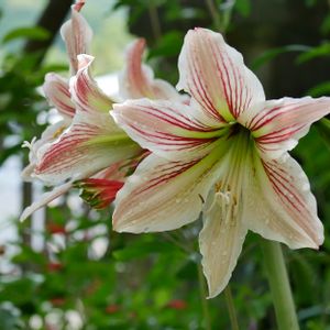 今日は朝から雨が静かに降ってます。さて、我が家のアマリリス、赤が咲いた後 やっと白いのが開花しました。隙間からチラリとこっちを覗いているのは、我が家で雑草化しているアルストロメリアの原種系「プルケラ」 もの凄い繁殖力で恐いくらいでございまする(:^ー^A