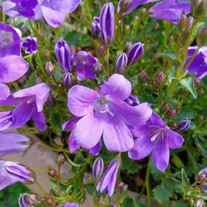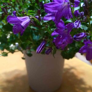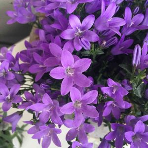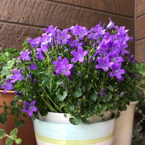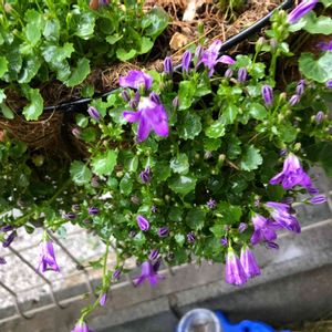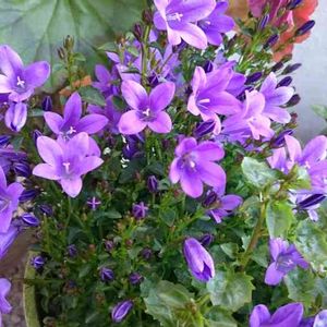 おはようございます😊 2年目?3年目⁇の【カンパニュラ オーシャン】デンマークのThoruplund社で育成されたカンパニュラです💁 強靭で姿もコンパクトにまとまり花持ちも良く鑑賞期間が長く管理が容易な優れものです👏 面倒くさがりの私にピッタリ‼️ でも、そろそろ植替えしてあげないと窮屈そう😅