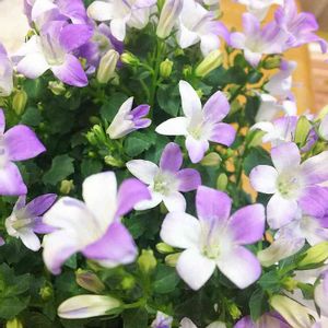 カンパニュラ《オーシャン》 以前ベルフラワーと読んでたお花でしょうか? 薄むらさきばかりの鉢のなかに、白と紫が混ざってるものが一つだけありました😅 働いてるスーパーのお花やさんなので、昼休みに買い物しながら必ずチェック😅 ついつい誘惑に負けてしまいます😅