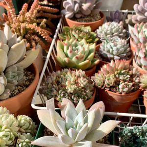 いい天気☀️ 今年はチビっこ3鉢以外、全部外の軒下で冬越ししてます💦水切ってるからドライフラワーの様な姿のコもちらほら😅 この2年、夏に弱らせ冬に小さくするを繰り返していたメキシカンジャイアント、今年は無事に大きくなって来てる😆❣️