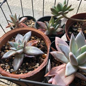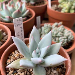 エケベリア属 メキシカンジャイアント🌱 高かった😅 もうすぐ1年経つけど、名前負けした大きさ。後ろのペンデンスも共になかなか大きくならない。素焼き鉢のせいかな〜、でも桃太郎は同じ鉢で凄くいい感じに葉が増えた❣️ファンファーレは下葉がカラカラになり、こないだとうとうプラ鉢へ。 各々個性があり、あれこれやってみるのがまた楽しい😊