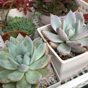 エケベリア🌱 春に皆んな大きくなった😊葉挿しや子株の2代目も少しずつ増えてきて賑やかに🎶 6月からは梅雨と夏対策で遮光して☀️水減らして💧見守ります🌱