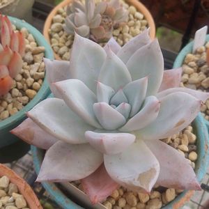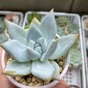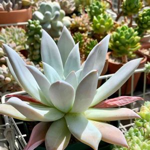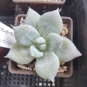 白い多肉続きで,今回はメキシカンジャイアント。冬は少しピンクになるけど,この時期は青みがかった白一色になる。夏はやっぱり白い多肉が涼しげ。