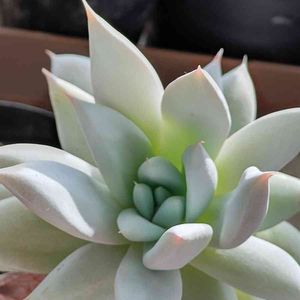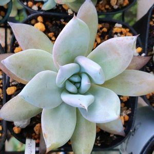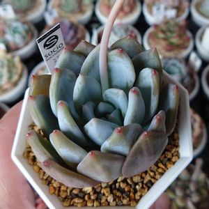 エケベリア メキシカンジャイアント お迎えして1年が経過し、ようやく成長スイッチが入ったメキシカンジャイアント♪子株もチラリ♡葉が伸びすぎな気もしますが、大きくなってくれて嬉しいです♡