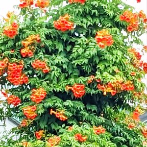 今日も全国的に真っ赤かですね〜🔆 ̨ ̨ ₍ 🕶 ;₎՞՞🔆 ̨ ̨ ₍⌯́⌓⌯̀ ₎💧 昨日の🐕散歩で撮したご近所のノウゼンカズラ❤️❤️ 今日のお花でした😊 こんなにのびのびと大きくて北国なのに南国みたいです🌺🏵️🌴