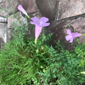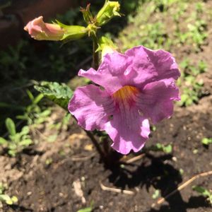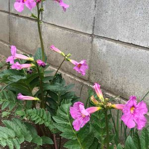 日陰に強いお花ということで、3月に苗を植えていた子が、今日咲いてくれました😄 ✨こんにちは😃はじめまして、インカビレアさん🤗✨ あったかくなって、🌿がどんどん大きくなってきてきたので、どんなお花に出会えるのかとワクワク((o(´∀`)o))ワクワクしていました😆