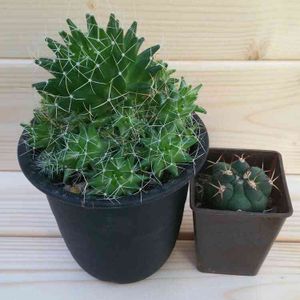 右→今年買ったダイソーサボ🌵 左←去年買ったダイソーサボ🌵 去年の夏に買ったダイソーサボテンが1年ちょっとでこんなに大きく子だくさんになりました Σ(・ω・ノ)ノ