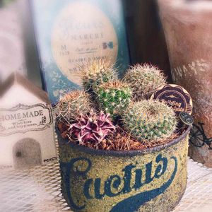 🌵サボテンの 寄せ植え🌵 🌵銀手毬 🌵ベニハナウチワ 🌵トルカ どんなお✿が咲くか 楽しみです ヾ(。>﹏<。)ノ゙✧*。