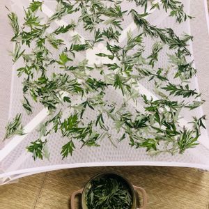 大きな雨ではないものの、合間にパラパラと雨☔️が降り出したりするお天気。 降らない間に裏の畑に生えているよもぎを採取🌿 天日干しもままならず、室内でエアコンと扇風機の力を借りて乾燥中❣️ 半分はよもぎオイルを作って、残りは晴れたら☀️に当てて、よもぎチンキを作る予定💕
