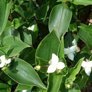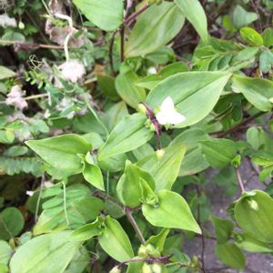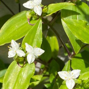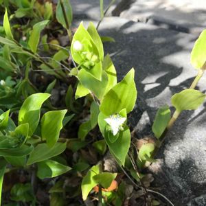 去年から、お庭にひっそりと住んでいるこのお花💠 何と言うお花でしょうか? 茎が紫色だったので、トキワツユクサみたいです🤗 かとやんさん、モンチッチ(喜寿)さん、まるちゃんさん、回答ありがとうございました(* ´ ▽ ` *)✨