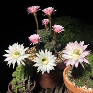 『エキノプシス繚乱🌸梅雨入りの憂鬱を吹き飛ばす❗️』 今晩またきれいに咲きました(^^) 記念に一枚撮影(^-^)もう既にかなりの数結実してますが、枯らすのももったいないので一応受粉させときました😋たくさん種ができたらまた食うかw ジュースに混ぜたらチアシードっぽくなると思います。もはや家庭菜園の作物と化してますw(^^)