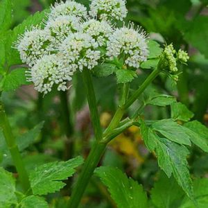 ウォーキングで出会ったお花 その(4) さっきと同じひっつき虫さんのお花とか思ったけど よ〜く見ると 葉っぱも違う‼︎ これってセリの花ですよね?