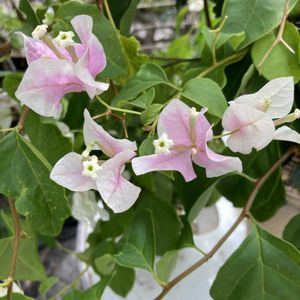 🌸ブーゲンビレア🌸 ①②白いブーゲンビレアがピンクへと色変わり🩷 ③④⑤フェンスに絡めたピンクのブーゲンビレア🩷 この後剪定✂️ 一面に咲く様に、、後一歩でしょうか💓 終戦記念日ですね🇯🇵