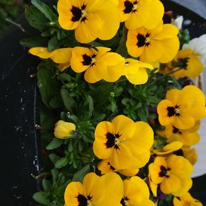 ただいま 庭のハンギング ビオラ 画面横にして御覧くださいね❤️ 色の少ない時期ですのでビタミンカラーを中心に2鉢吊るしてただいまモリモリ状態です。🤗