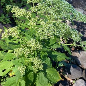 今日のお花 オトコエシ スイカズラ科オミナエシ属 神代植物公園 植物多様性センターの 伊豆諸島ゾーンには 背の低い、オトコエシが咲いていました 本土のオトコエシが匍匐茎を出して増えるのに対し、匍匐茎を出さず種のみで繁殖するタイプだそうです 研究がまだされず、変種扱いにはならずオトコエシなのだそうです