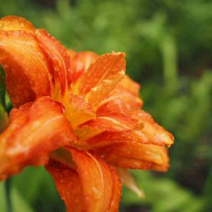 ヤブカンゾウ 強めの雨にも臆することなく、しっかりと前を向いています。