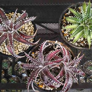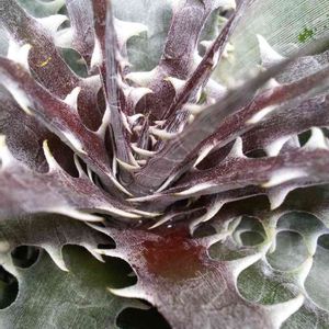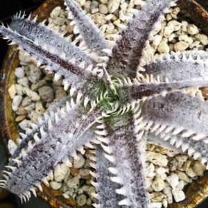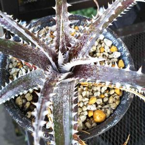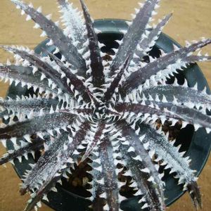 ディッキア ソウフィッシュとHHのハイブリッドは家にこの株を含め3つありますが、どれも表情が違います(*'v`*) この株は仔吹きが旺盛でお粉が少な目で紫の葉色が上品な美人さんです(*´艸`*) Dyckia 'Sawfish' ×'Heaven & Hell'