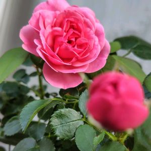 ピンクの ルエリア(ヤナギバルイラソウ)が雨上がりに可愛らしく咲いています 去年から10号鉢のままなので根詰まり気味 すぐに水切れしてしまいます😅 🌹バラはレオナルド・ダ・ヴィンチ