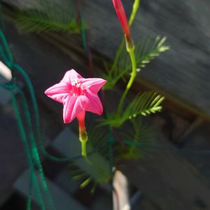 ようやく、ルコウソウが1輪☆💕 今年はなかなかお花が咲かず、 半分諦めていましたが、やっと😂 蕾は、まだまだたくさんあるから、これからに期待🥰 あと、紫錦唐松の枯れ枝を取り除いたら、少しだけ離れた所に、 生き生きした緑の葉っぱ〜? まさか、もしかして😓 芽吹いた?