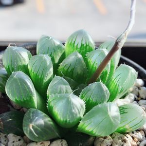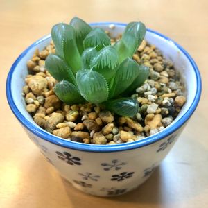 我が家の食卓に置いてあるハオルチア。 水槽用ライトの木漏れ日を受けながらもすくすくと徒長している気配。可愛い。
