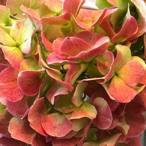 お店でみかけた、紅葉してるようなクリスマスカラーのようなアジサイ
