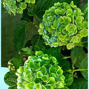 🌺秋色アジサイ 💙〜💚へ、かなり進んで きました🙆🏻 暑さに負けないで 綺麗な緑色に変化してくれますように…(*´˘`*)♡ 。゚ ゜゚ *+:💙💚💜。:+* ゚ 。:+* ゚ ゜゚ *+:。:+* ゚ ゜゚ *+:。