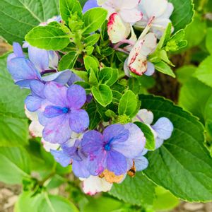 おはようございます😊 何年も前から毎年咲いてくれてる可愛い紫陽花…名前も、最初の色も忘れました~笑 ←は挿し木をした💮ですが、色は少し暗い感じになった気がします😃 😃