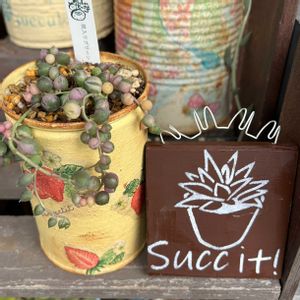 🍀お礼用にリメ缶の寄せ植えを作りました 多肉をあまり知らない方にやから普及種のみで笑 🍀トップシータービーかなぁ?ちょっと名前自信がないです笑 結構な確率でワサワサになるのが 面白い 🍀斑入りのグリーンネックレス 切るまえに撮っておこう♡