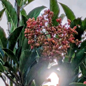 リハビリついでの 花散歩で✨ 💚🔴💚🔴💚🤍🔴💚🔴🌿🧡⚫♪ 実がなっているものが揃いました🔴⚫🎶 1️⃣サンゴジュ 実がだいぶ赤くなってきていました 2️⃣ハマナスのローズヒップ 花はほとんど咲いていませんが… 実が沢山🔴🟠🟡 3️⃣クワズイモ ←大きな葉っぱ お花も咲いていました↑ 種もできていました ↓ 4️⃣ヨウシュヤマゴボウ 5️⃣テーブルヤシ 緑の葉の中にオレンジ色の枝と黒い実 が綺麗でした 今日も 笑顔😄で 過ごせますように💐