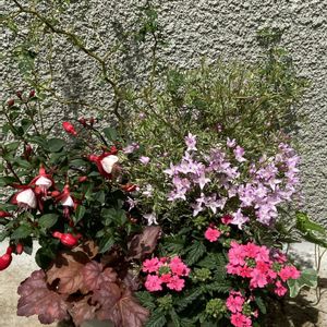 寄せ植え作りました♪ ピンク系の香りのあるお花を使って 春らしい寄せ植えに🩷 ボロニアピナータは一株で淡いピンクと濃いピンクの2種類の花が咲く お得な可愛い子です♡ 柑橘系の香りもいい香り🥰 香りナデシコもふんわり良い香りで ふりふりのピンクが可愛らしい💕 シレネピンクパンサーは淡いピンクが珍しくてお連れした物。 鮮やかな濃いピンクはよく見かけるけど、この子は優しいピンクが可愛いのです♪ 斑入りのツルニチニチソウも咲いてきました♪ラベンダー色が綺麗💜 おしゃれには無縁のズボラ寄せ植えで自己満足ですd(^_^o)♪