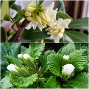 沈丁花が、花開く時に、こんなにステキな香りを放つのですネ 小さな鉢植えにて、棚上の目線辺りに置いています。玄関に立つと、何の香り?と思いました。 2年生の、プリムラ。(わたしは初めてなのです) しっかりした花苗だったせいか花数多く昨年、楽しませてくれたのですが、 ちゃんと生き残り、 春が近づくと粋のいい葉が出だし、いよいよ、つぼみが現れてくれたのですから、素晴らしい❣