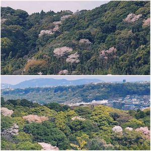 山桜、… 白く分布している所、山桜になります! 上手くパチリ📸いかなかったのですが、 明日から🌂天気予報。 散らないで…!