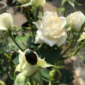 おはようございます☂️ ミニバラ🌹2番花咲いてます✨ コガネムシがまた来てる💦