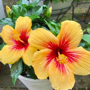 最近ハイビスカス🌺が気になる… ぽちぽち 集め始めてしまう😓 八重咲きとブッソウゲタイプが ほしいなぁ💕 横のサンクエールが やっとモリモリし始めてきた。 夏の花って感じです💜