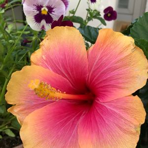 ハイビスカス🌺とビオラが一緒に咲いてるって、季節感ないな…