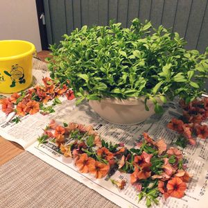 子供が寝静まった後、家の中でチョキチョキ切り戻しました✂️🌃 我が家を華やかにしてくれてありがとう🌼