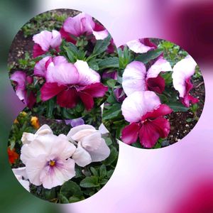 3/16 (日) 🌧 ①〜⑤🤍🩷💜💛💚パンジー・ビオラ💚💛💜🩷🤍 ※スミレ科 ※スミレ属 3/16付📷📱💕プランター花〜💚💛💜🩷🤍💗