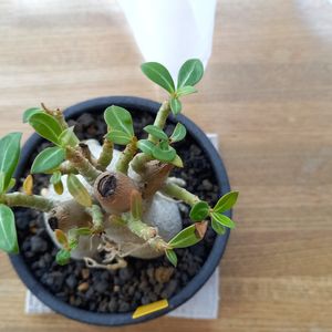 アデニウムちゃんも少しずつ葉っぱを取り戻してる そろそろ個別に植え替えるかなぁ