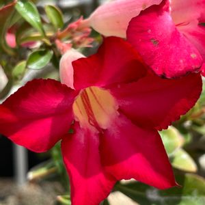 「砂漠のバラ」と呼ばれるアデニウム オベスムの花🌺 情熱的な真っ赤な花色が暑さを吹き飛ばしてくれそうです♪