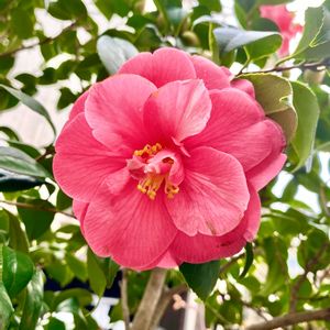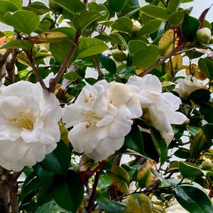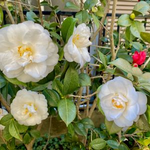 🌺 一本の木に紅白の花が咲いてるハイブリッド椿 接木で育てたとのこと