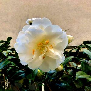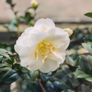 ~最後の一輪~ 早咲き椿 白嶺 今年は4輪楽しめました。後半には八重咲き椿K.サワダが控えています。