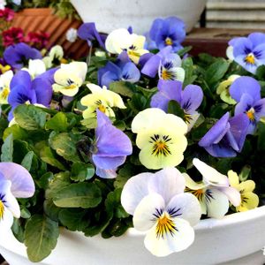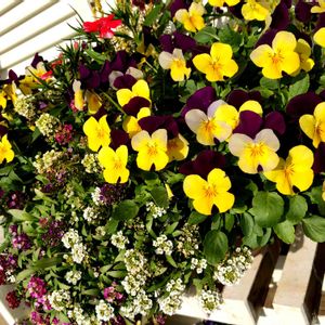 寄せ植えの中ビオラとアリッサム