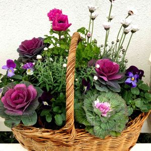 リースの残りの葉牡丹、ビオラで寄せ植えを作ってみました