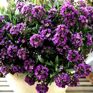 寄せ植えの中の紫のアリッサム モリモリにです