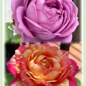 カインダ・ブルーとマルク・シャガールの2番花が咲きました。 ☺️ 薔薇はわからないので・・・ カインダ・ブルーの蕾にはアブラムシがよくつきますねー!